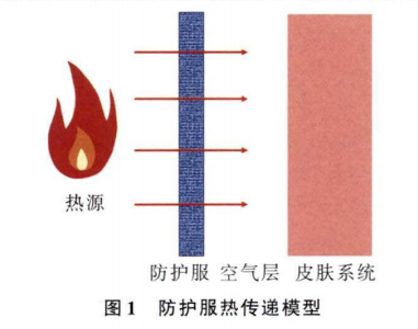 在人體-服裝-環(huán)境復(fù)雜傳熱中,化學(xué)防護(hù)服介于火源和人體之間,充當(dāng)一種介質(zhì),其主要作用是阻止或減緩熱量向人體的傳遞,降低高溫環(huán)境對(duì)人體的威脅,故防護(hù)服的熱防護(hù)性能是評(píng)估熱防護(hù)服必備的指標(biāo)。因此,研究熱防護(hù)服在人體-服裝-環(huán)境之間的熱傳遞,對(duì)評(píng)估以及改進(jìn)防護(hù)服的熱防護(hù)性能具有重要意義。